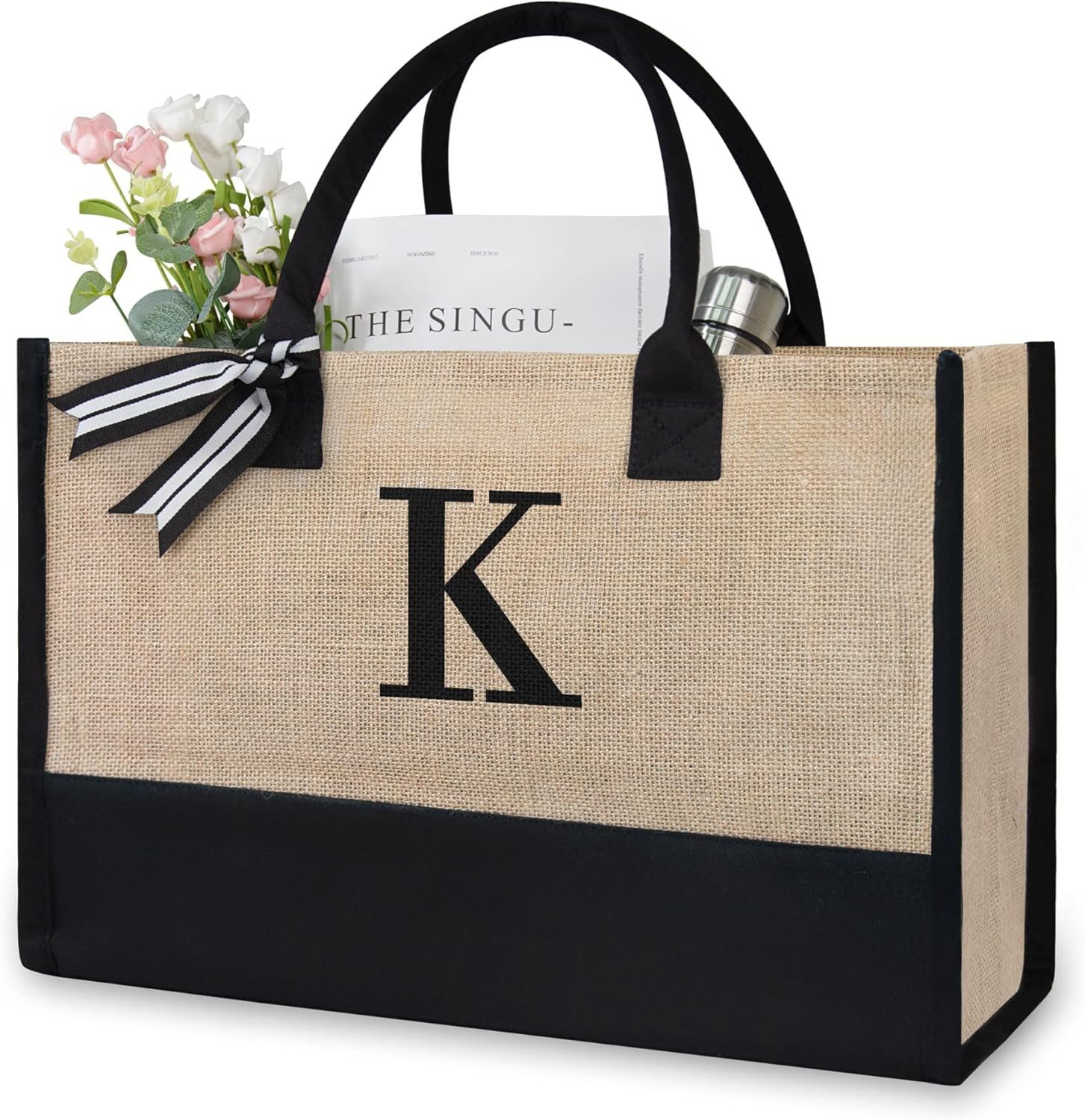 Name:Embroidery Initial Canvas Tote Bag